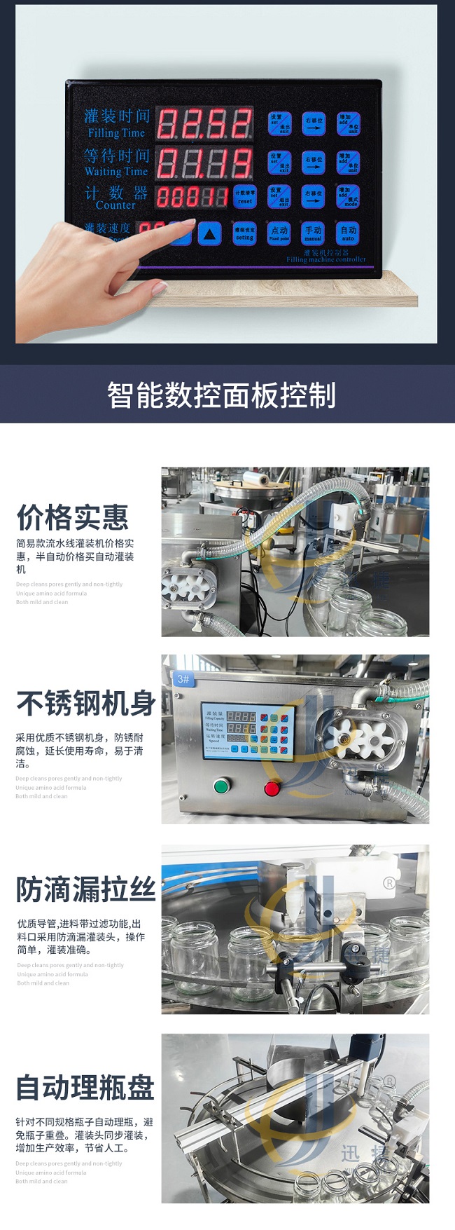 這款轉(zhuǎn)盤式蜂蜜膏液灌裝機(jī)采用智能控制操作,液體灌裝速度/時(shí)間可調(diào)整,廣泛應(yīng)用于食品、飲料、化妝品、藥物、化工等行業(yè)中。