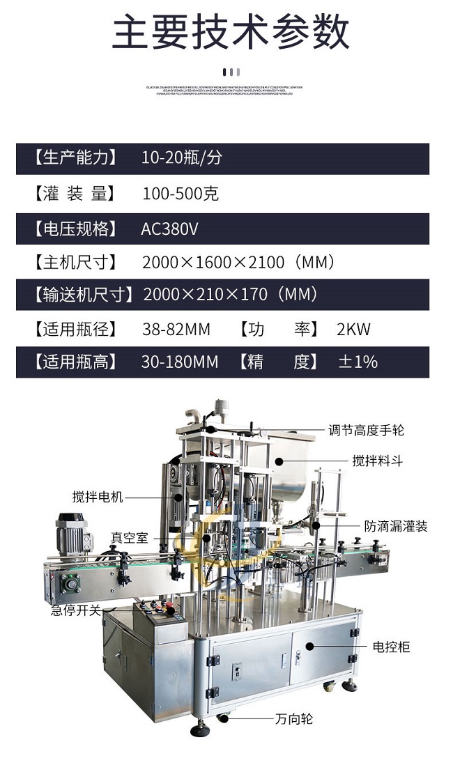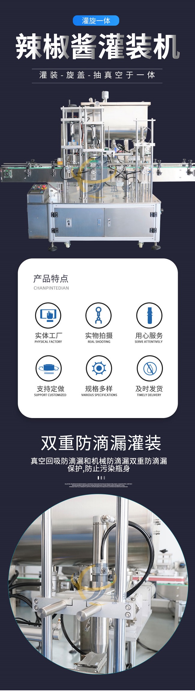 現(xiàn)在的生活節(jié)奏也比較快,牛肉醬也比較方便購(gòu)買,網(wǎng)上、超市都有的售賣,所以許多的商家開始與全自動(dòng)牛肉醬灌裝機(jī)廠家直銷進(jìn)行合作,全自動(dòng)牛肉醬灌裝機(jī)您知道如何選購(gòu)嗎?這時(shí)候在灌裝顆粒比較大或者比較粘稠或比較干的醬料的時(shí)候,我們?nèi)詣?dòng)牛肉醬灌裝機(jī)采用柱塞式進(jìn)行計(jì)量,保證定量準(zhǔn)確可靠,可用于多種瓶型,換瓶型只需要更換一套模具,模具更換的時(shí)間約為15分鐘左右,為了迎合社會(huì)發(fā)展的主題,全自動(dòng)牛肉醬灌裝機(jī)效率高,幫助了很多企業(yè)解決了人工難題也更受消費(fèi)者歡迎。