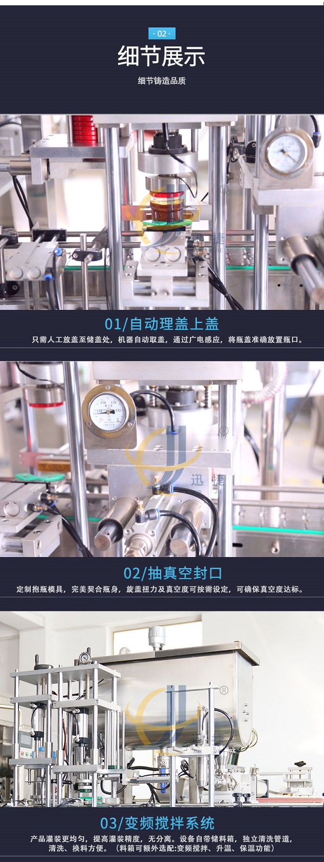 迅捷機(jī)械加工設(shè)備齊全,技術(shù)力量雄厚,選用德國(guó)PLC控制系統(tǒng)、臺(tái)灣AirTac的氣動(dòng)組件和臺(tái)灣伺服的電控組件,從這幾個(gè)部件可以看的出來(lái)全自動(dòng)牛肉醬灌裝機(jī)改善的不僅是質(zhì)量,生產(chǎn)效率和產(chǎn)品的外觀包裝,還會(huì)不斷的引進(jìn)國(guó)際上新的科學(xué)技術(shù),全自動(dòng)牛肉醬灌裝機(jī)用更好的質(zhì)量滿足生活的需求。在自動(dòng)化生產(chǎn)日漸普及的今天,全自動(dòng)牛肉醬灌裝機(jī)讓企業(yè)的商品以更快的速度出現(xiàn)在市場(chǎng)中,畢竟一些繁雜的工作讓人工去完成的話不但麻煩,效率也不會(huì)很高,想要適應(yīng)現(xiàn)代化的大規(guī)模批量生產(chǎn),就需要全自動(dòng)牛肉醬灌裝機(jī)的幫助來(lái)代替人工完成這些繁雜的工作。